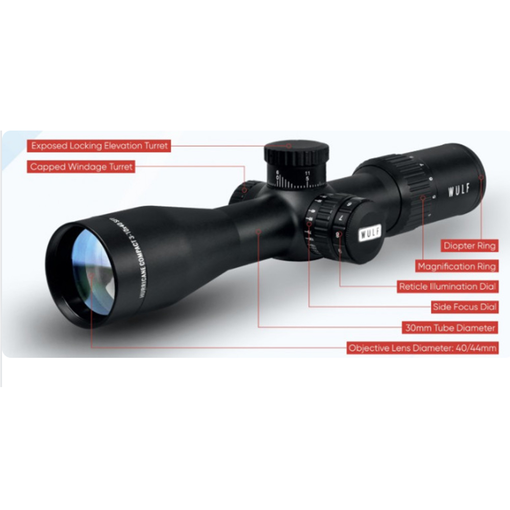 WULF Hurricane Compact Pro 3-10x40 SFP IR HFT 0.1MRAD 30mm Rifle Scope